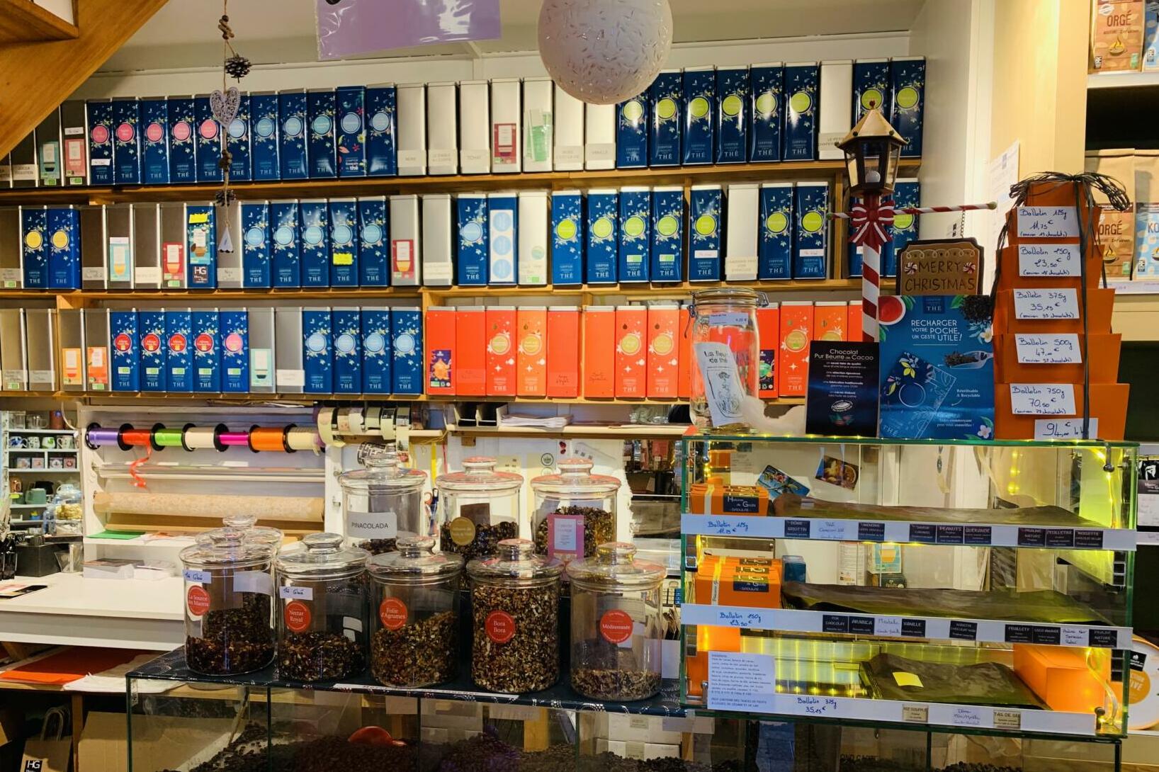 Le thé est ma spécialité : je propose aujourd’hui plus de 150 références sélectionnées auprès de quatre maisons réputées : Comptoir Français du Thé, La Route des Comptoirs, Orientis Gourmet et Vert-Tiges. Les amateurs de café ne sont pas en reste : je travaille avec Avel Cafés, un torréfacteur basé à Saint-Renan. Ces deux rayons reflètent bien l’esprit de la boutique : du goût, de la qualité, du conseil… et toujours l’envie de faire découvrir et de partager.