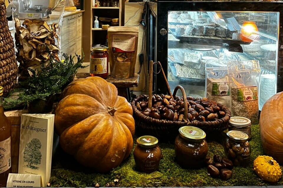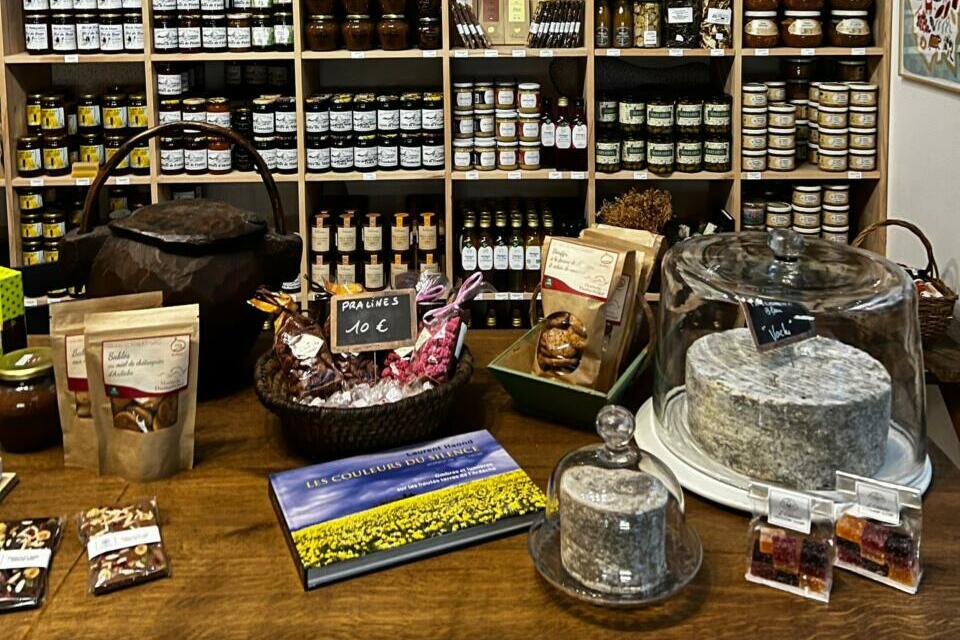 Notre cœur de métier, c’est d’abord la salaison. Nous vendons de la charcuterie du plateau ardéchois, très reconnues au niveau national : saucissons, rosettes, saucisses sèches, terrines… On retrouve aussi des fromages et une large offre de produits d’épicerie fine : miels, confitures, condiments, moutardes, vinaigres, vins, spiritueux… sans oublier tout ce qui tourne autour de la châtaigne, fruit emblématique de l’Ardèche. Et puis nous avons aussi des produits de la partie sud du département, presque provençale, tels que des huiles d’olive, des amandes, de la lavande…