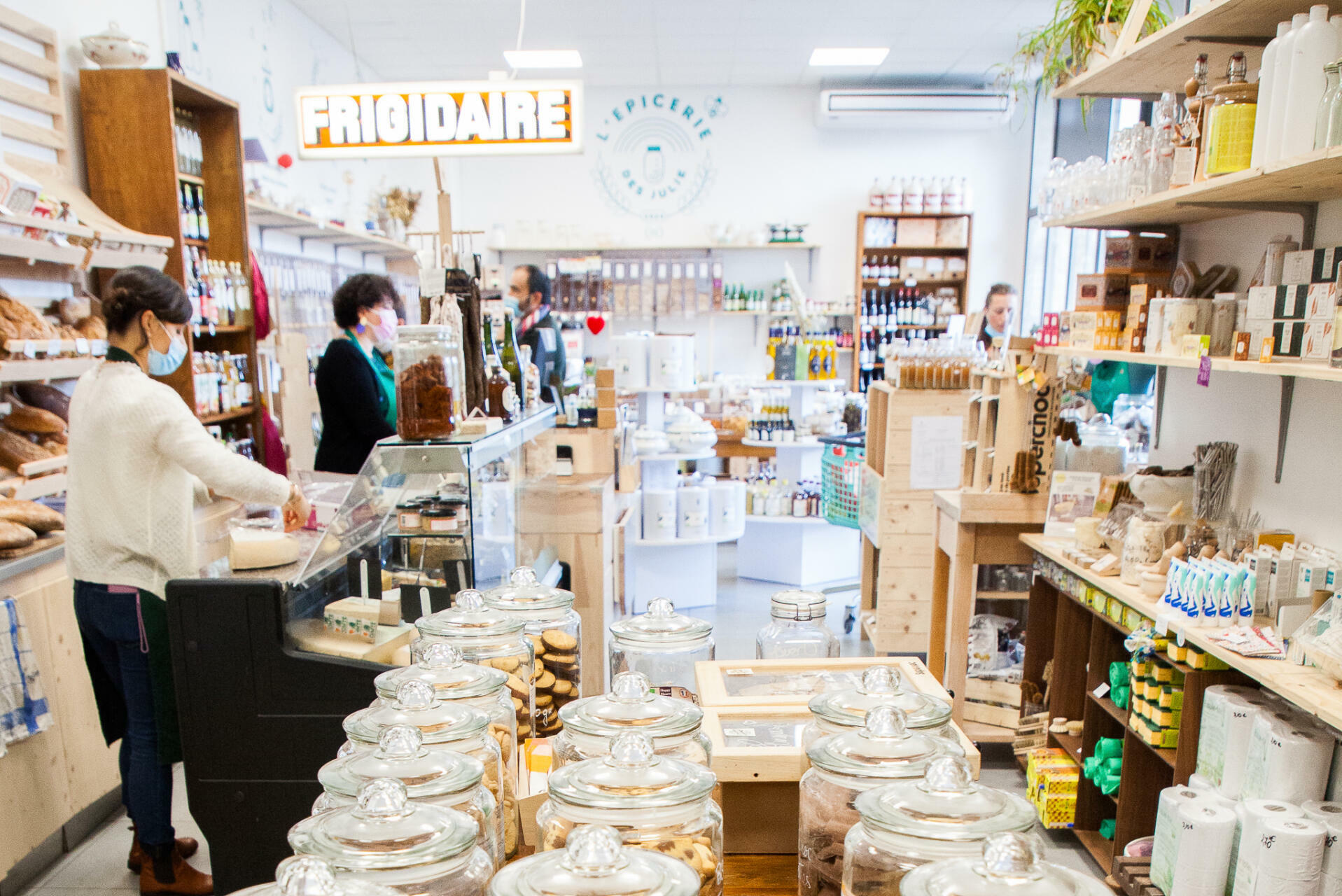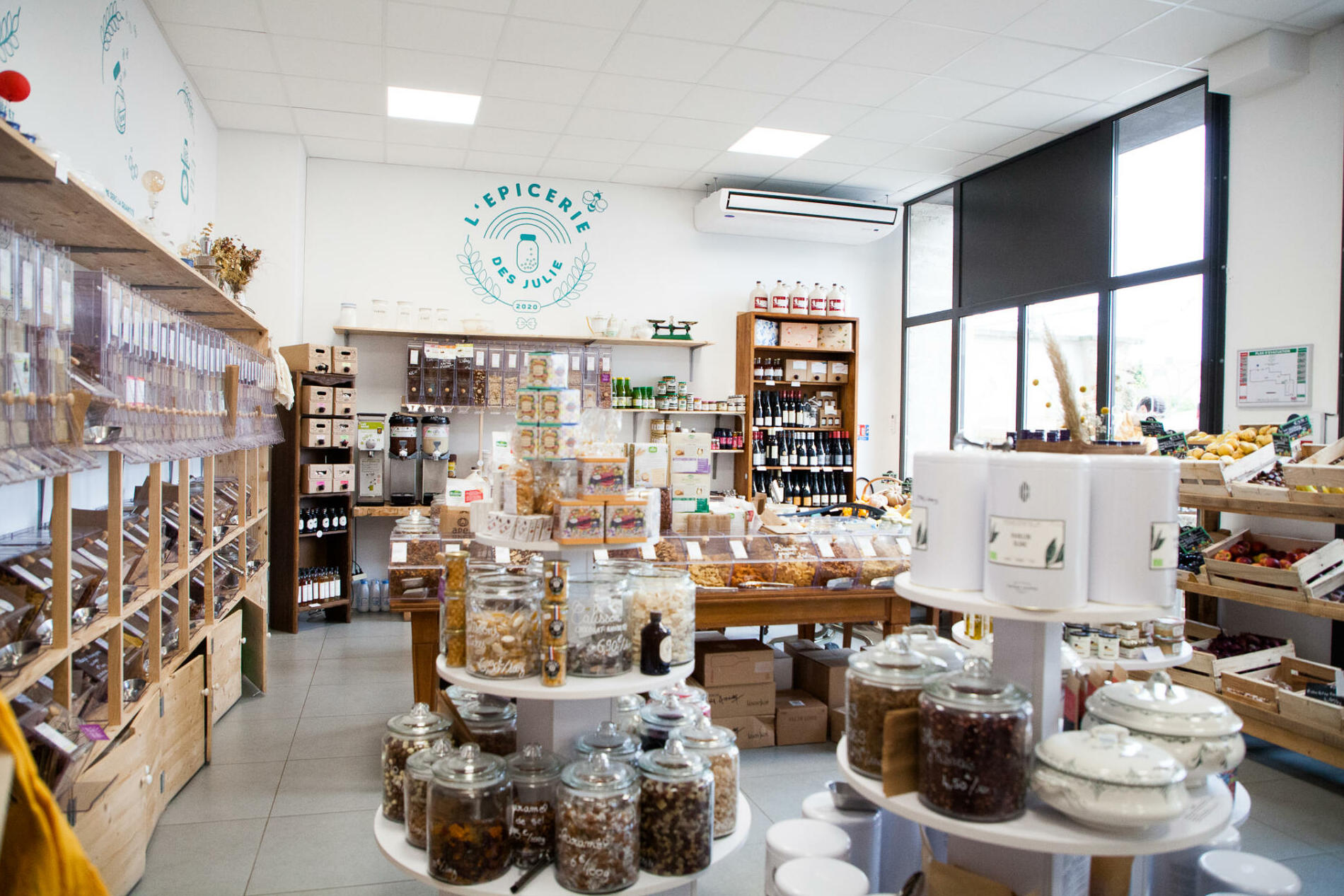 Julie Vantours – Notre concept est né lors du premier confinement, en mars 2020, pendant la pandémie de Covid-19. Voisines devenues amies, nos deux familles se sont confinées ensemble. Nous avons alors imaginé un lieu répondant à un besoin très simple : trouver des produits que nous aimions consommer au quotidien, c’est-a-dire des produits qualitatifs, de saison et majoritairement bio, dans un seul lieu afin d’éviter de multiplier les courses dans différents magasins. C’est dans cet esprit que nous avons imaginé L’Épicerie des Julie, que nous avons ouverte près de chez nous, à Éragny (95), en octobre 2020.